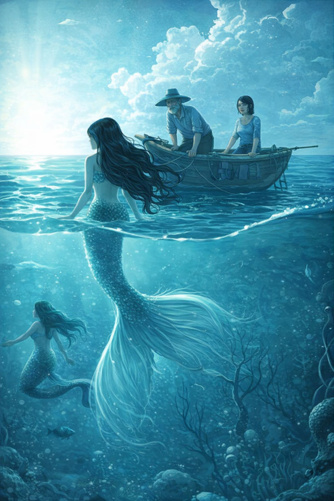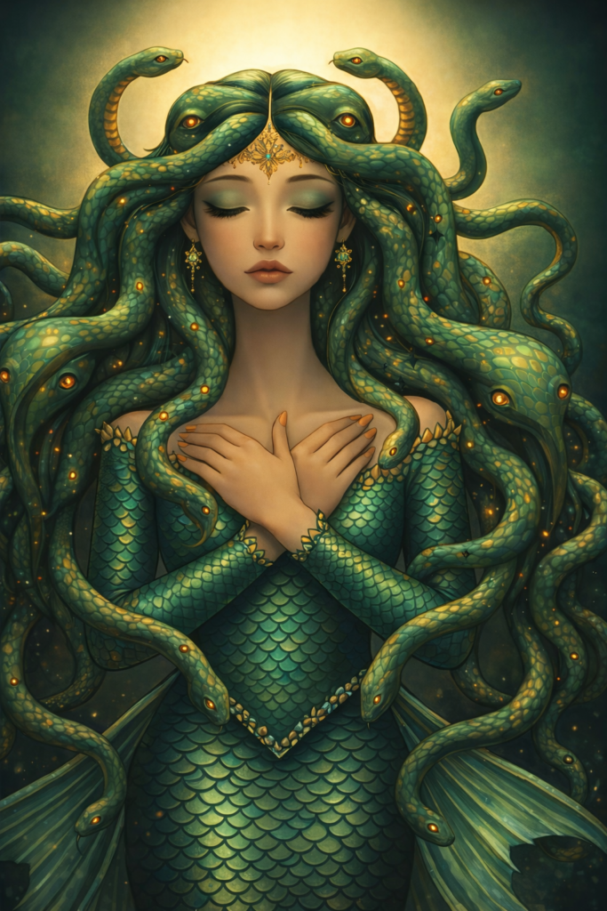 Στα βαθιά, κρυστάλλινα νερά του Αιγαίου, εκεί που το φως χορεύει με τα υπόγεια ρεύματα, ζει μια ύπαρξη τυλιγμένη στη σιωπή. Στο απομονωμένο της βασίλειο, με μάτια που ψιθυρίζουν αρχαία μυστικά και βλέμμα που έχει τη δύναμη να παγώσει τον χρόνο μόνο εκείνη μπορεί να αποκαλύφει την απόλυτη Αλήθεια.