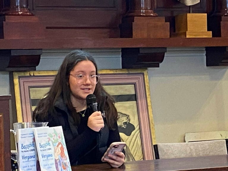 Ακολούθησε η παρουσίαση του δίγλωσσου βιβλίου «Βεργόνα, της Βέροιας η γοργόνα», της Παρασκευής Κοτσάλου, από δύο μαθητές του Northcote High School, τη Μελίνα Κιοκπάσογλου και τον Ηλία Ζόμπολα, υπό την καθοδήγηση της εκπαιδευτικού κ. Γιώτας Σταυρίδου, αντιπροέδρου της Συμμαχίας Φάρος για τα Ελληνικά.