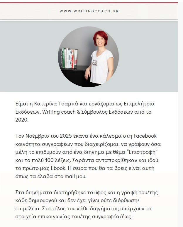 Συμμετοχή με το διήγημα μικρομυθοπλασίας 100 λέξεων στη συλλογή διηγημάτων του Facebook Group “The Greek Writing Community” vol 1